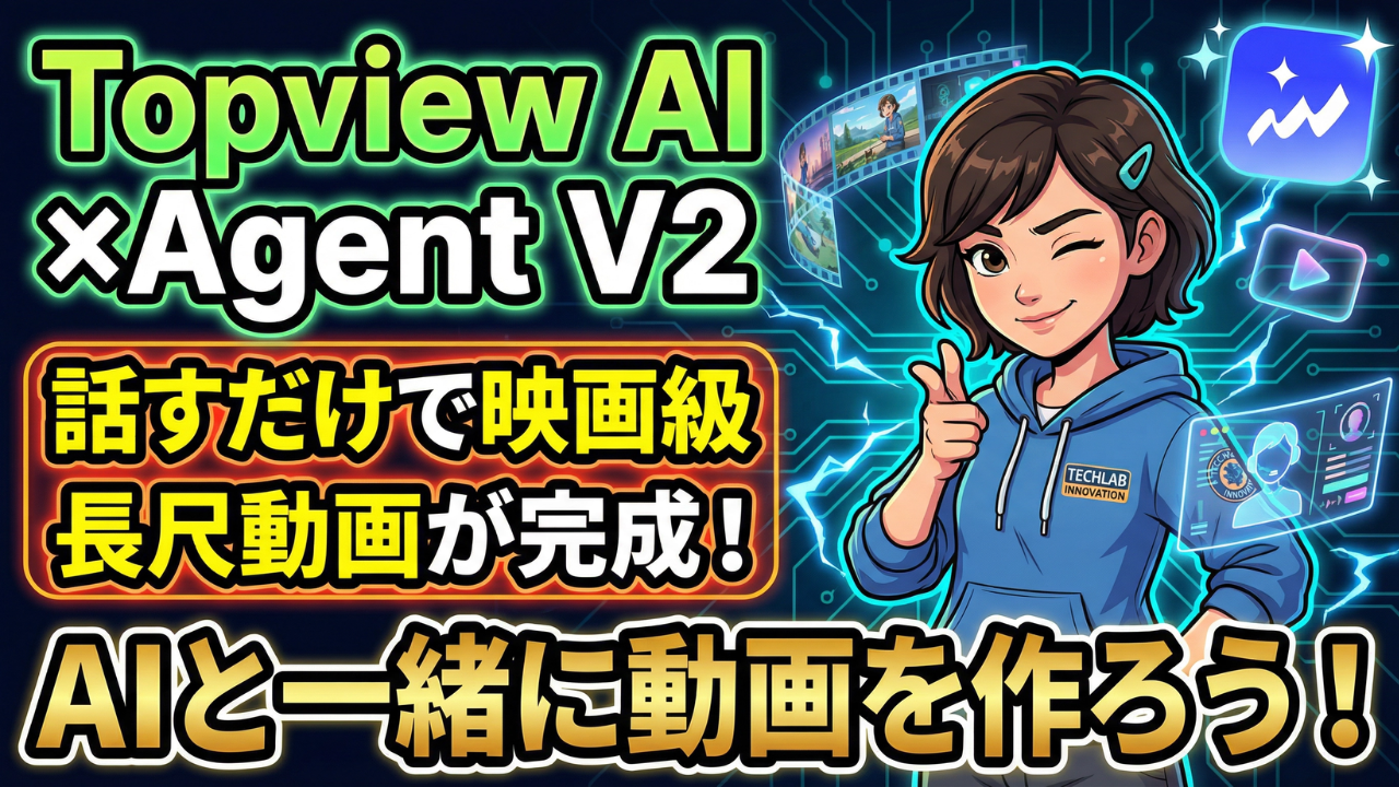TopView AI Agent V2は、AIエージェントと会話しながら映画のような長尺動画を自動生成できる最新の動画生成AIプラットフォームです。2026年4月のアップデートでエージェント機能が大幅に強化され、話し言葉だけでマルチシーンの映像を一括生成できるようになりました。