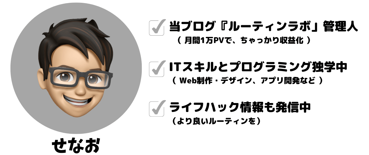 RutineLaboの管理人:せなお。 AIやITに関する情報発信中。ブログでは最高月間1.7万PVを達成YouTubeチャンネルも収益化に成功、総フォロワー数7,000人以上。 副業からスタートし、現在では月収10万円を達成しています。