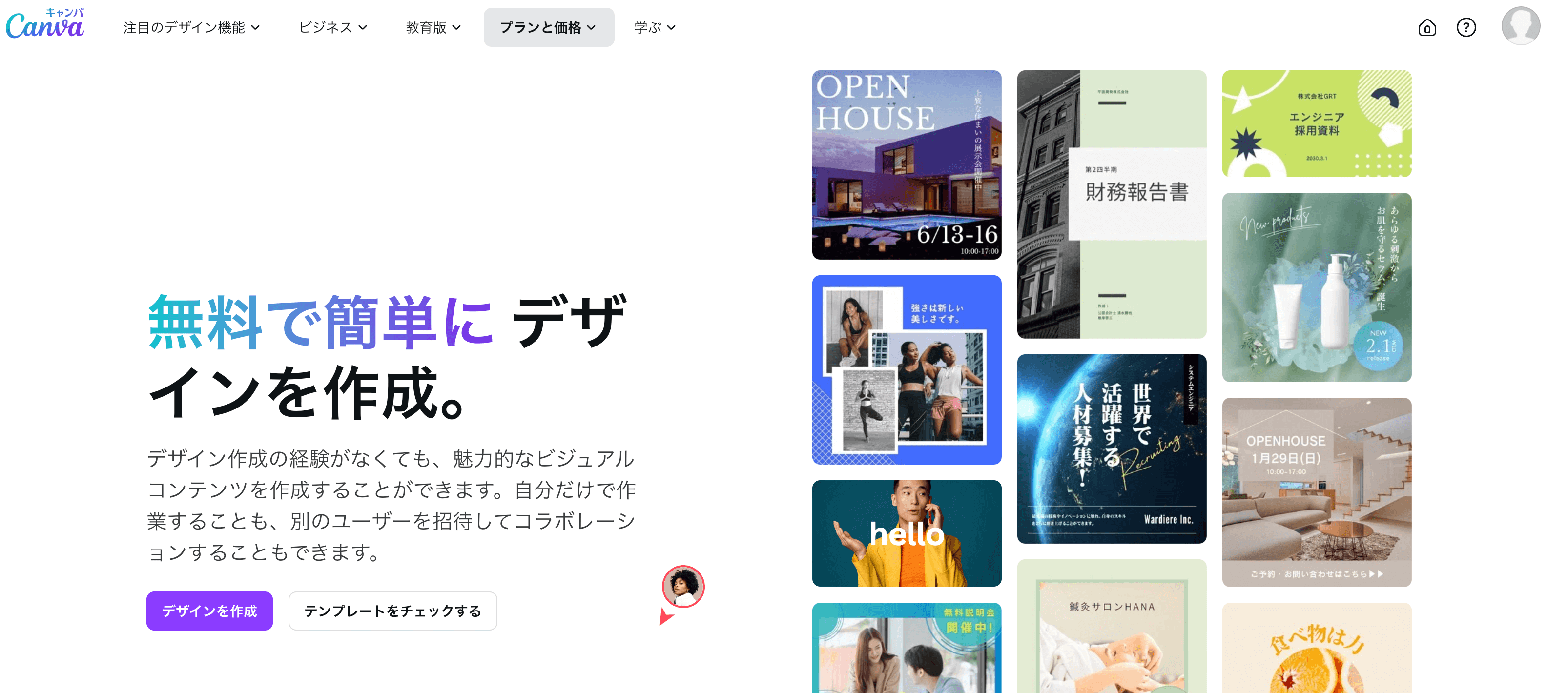 Canvaは、誰でも手軽にデザインやレイアウトを作成できるオンラインデザインツールです。無料版とCanva Proがあり、Pro版では背景除去などより高度な機能が利用できます。