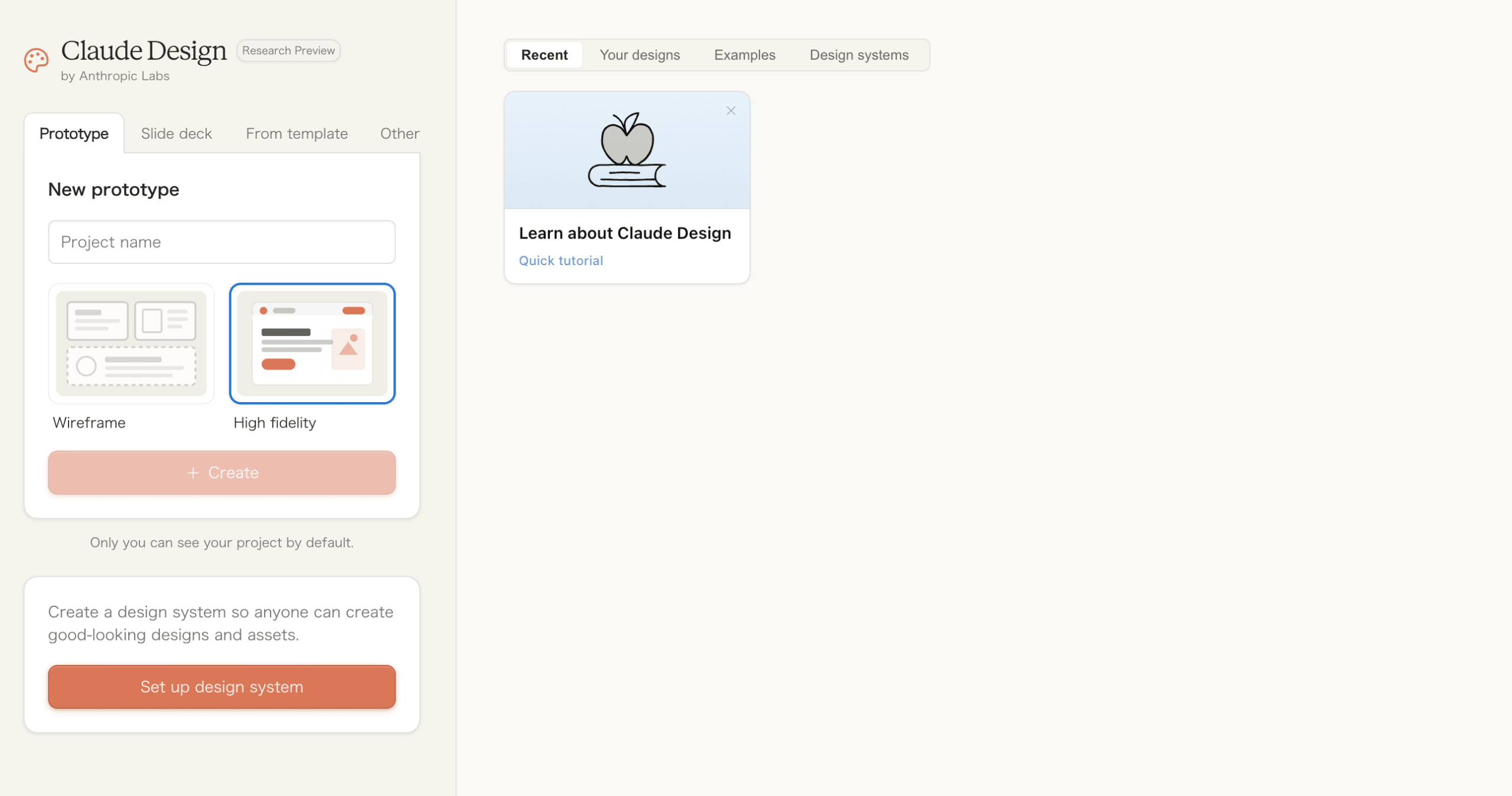 ビジュアル強化の流れで、Claude Designという新機能もリリースされました。左メニューバーに「Design」という項目が追加され、Webサイト・お問い合わせフォーム・Webアプリ・スライド作成などUI/UX中心の制作がまとめて行えます。