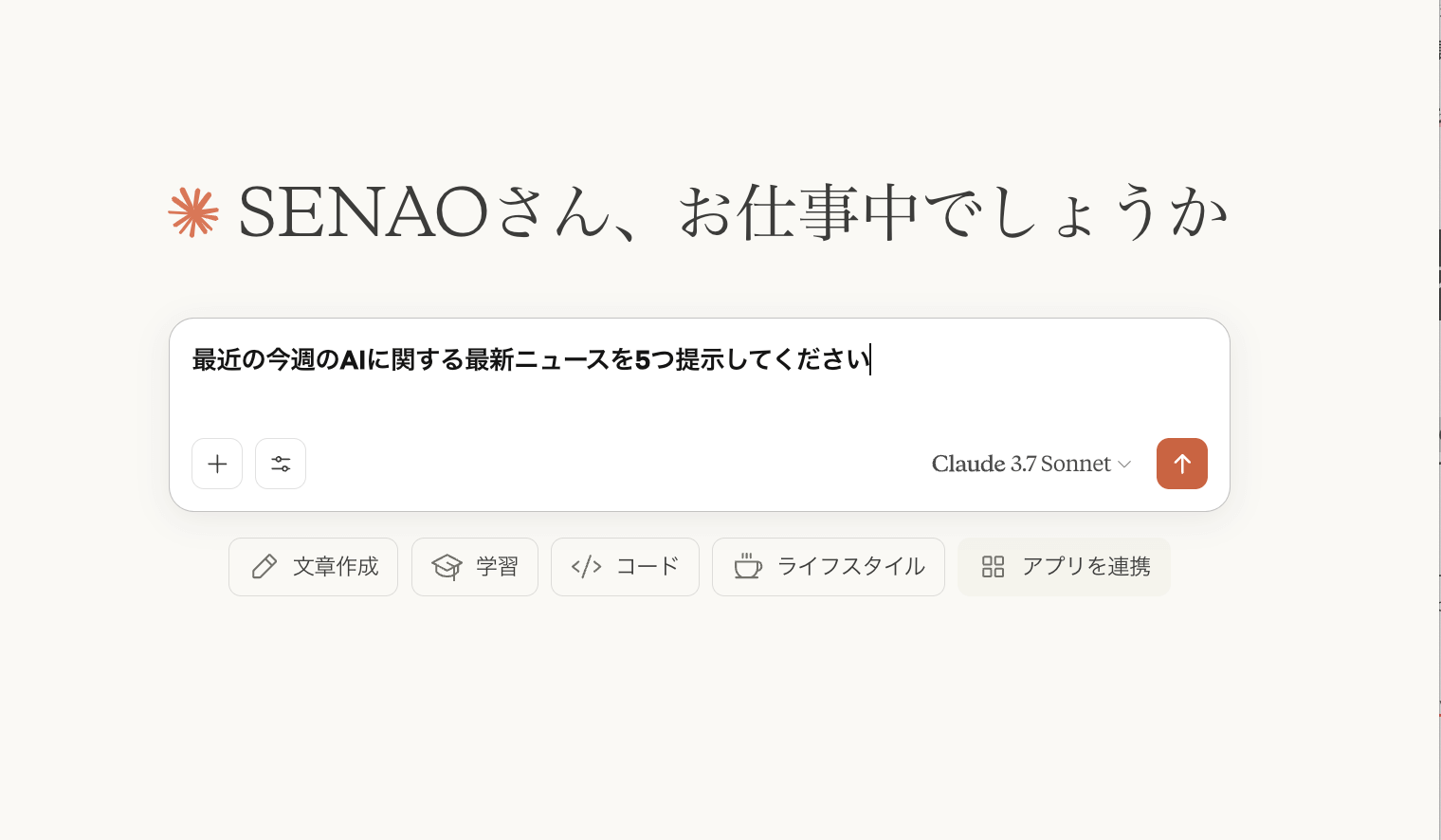 特にビジネスパーソンやコンテンツクリエイターにとって、この新機能は業務の効率化や創造性の向上に役立ってくれます。Claudeのもともとある優れたテキスト生成機能に加え、情報収集からコンテンツ作成、スケジュール管理まで、一貫して任せられるようになりました