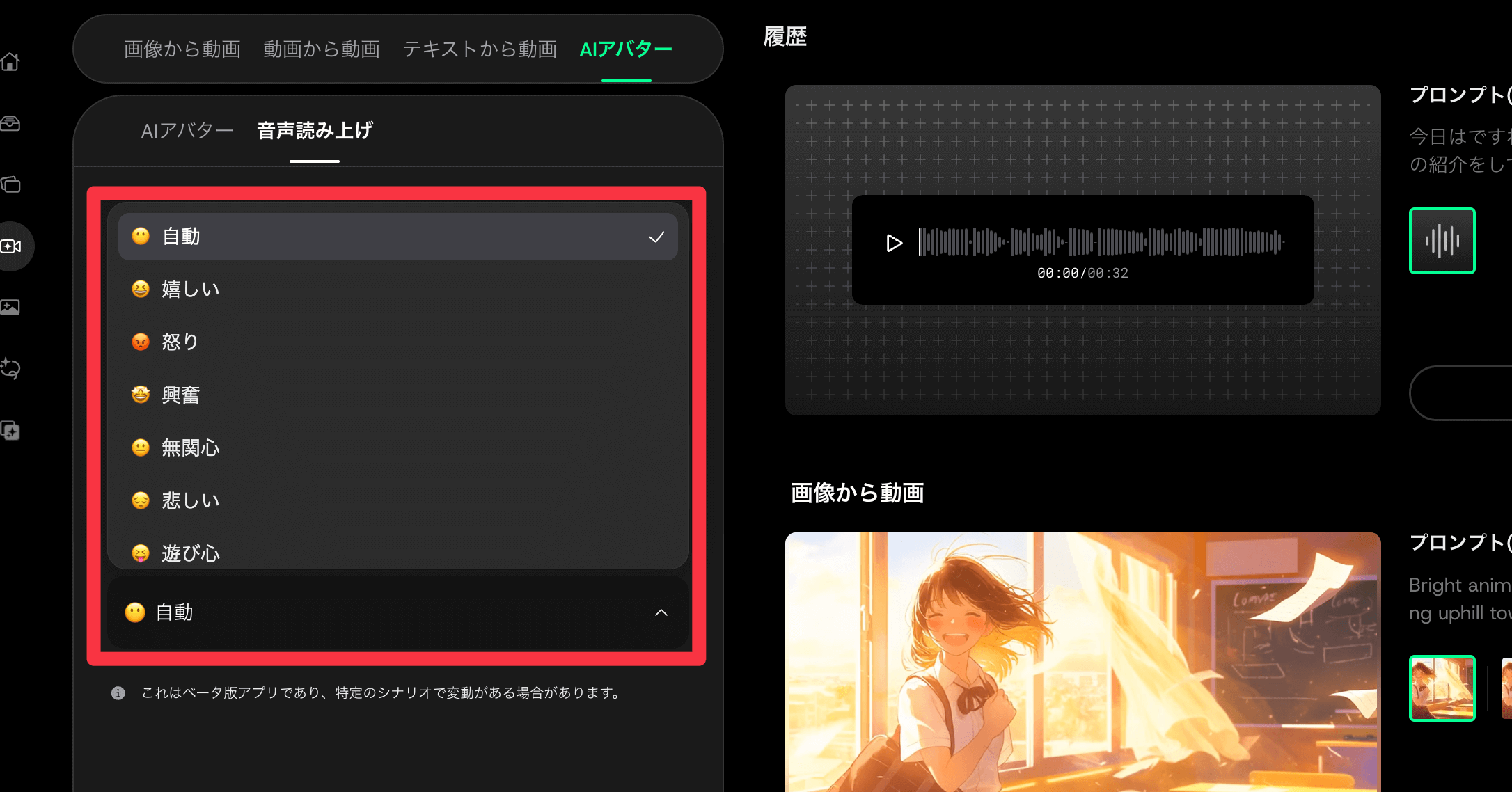 Talking Avatar機能は、2025年5月にリリースされた新機能で、顔写真と音声ファイルから、自然に話すデジタルアバターを生成できます。6月のアップデートでは、リップシンクの精度が大幅に向上し、最大60秒の動画生成に対応しました。