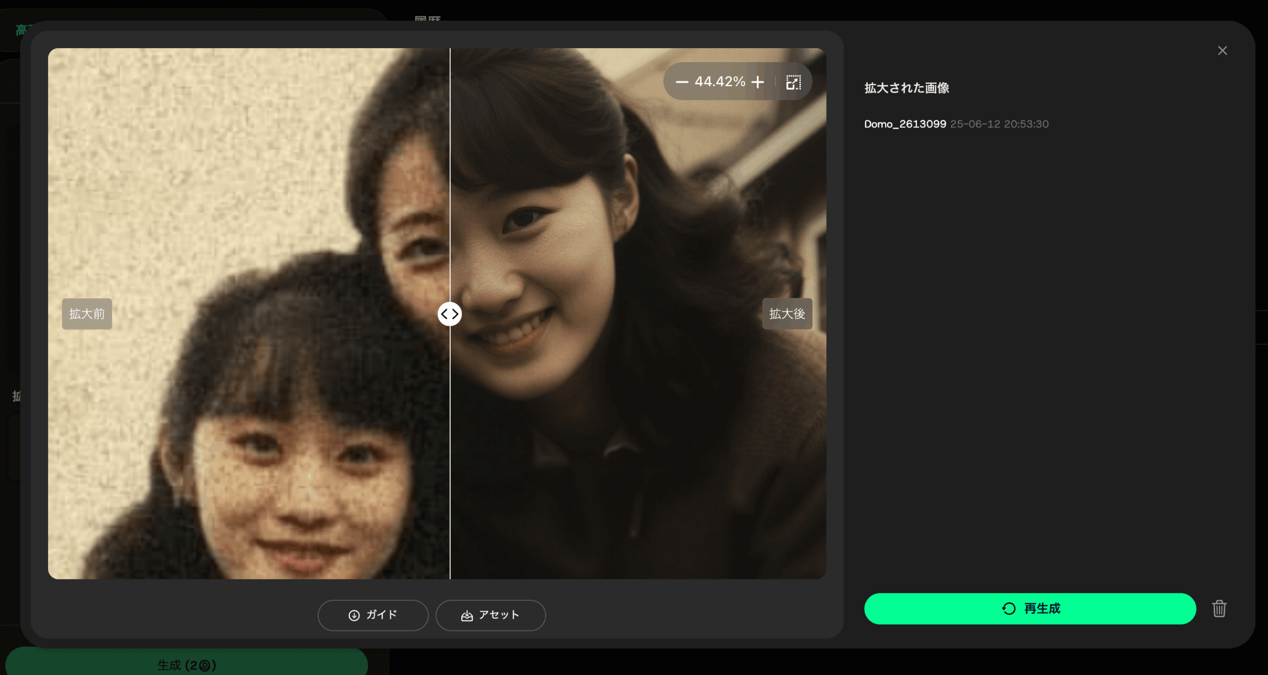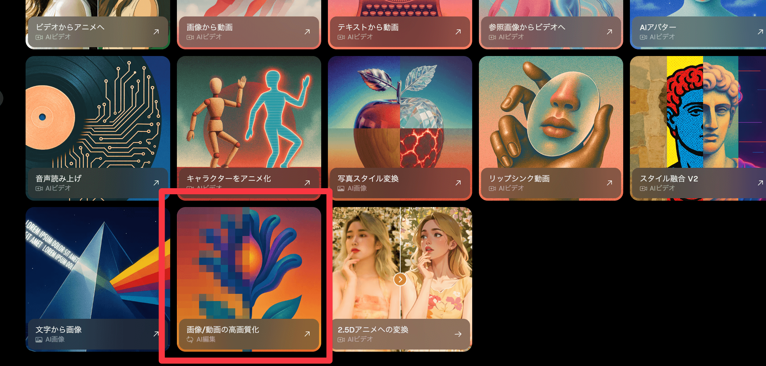 この機能は、画像・動画の両方に対応しておりそれぞれのコンテンツをアップスケールすることが可能です。