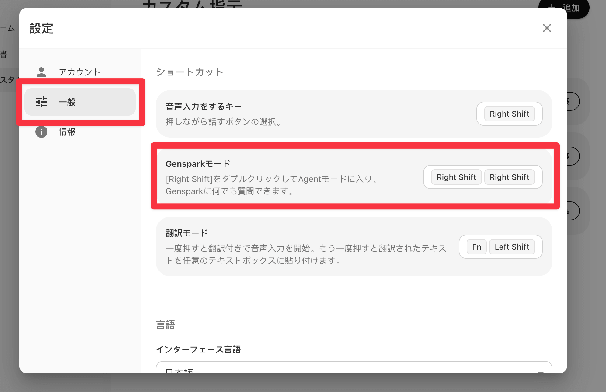 設定したショートカットキー(例:ファンクションキー)を2回タップすると、Gensparkの入力画面が直接起動します。