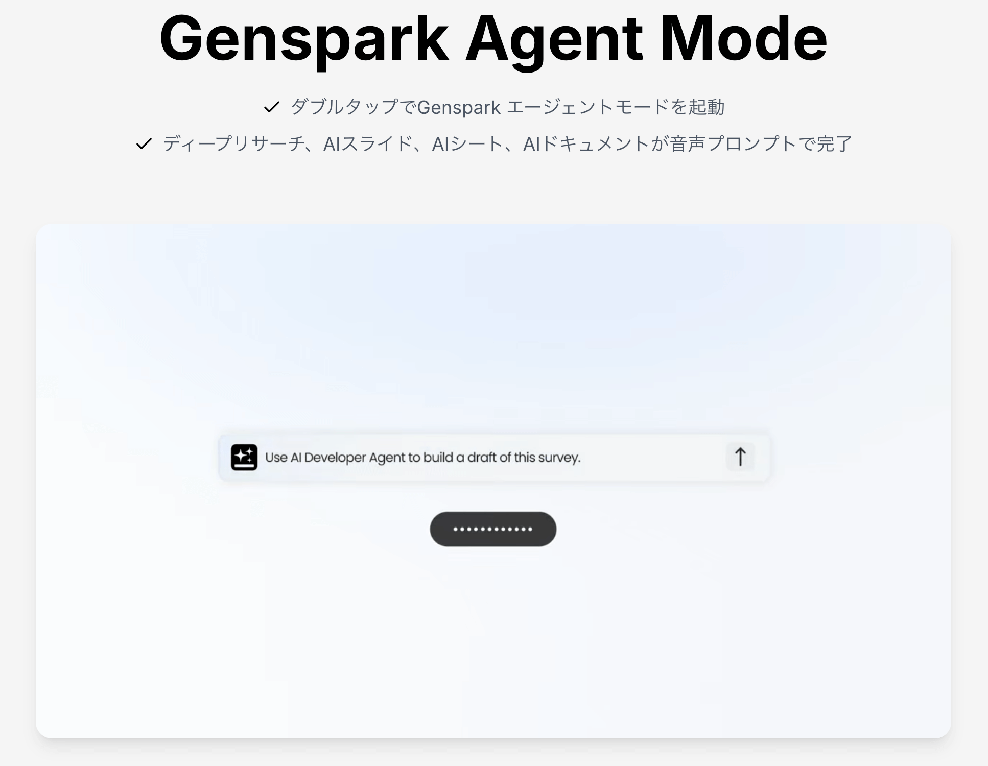 | エージェント連携 | Gensparkのエージェント機能に音声入力した内容を直接投げられる |