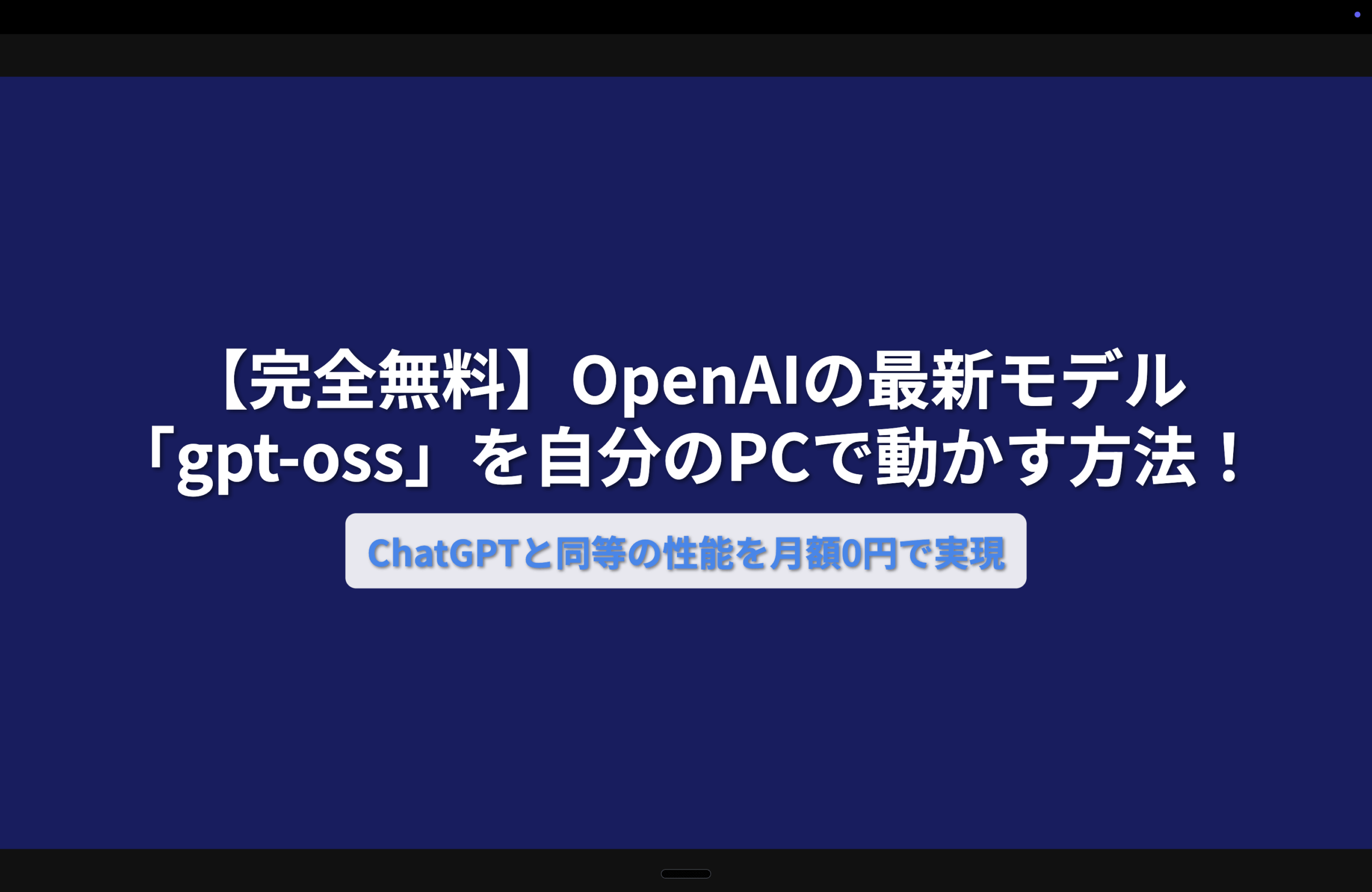 【完全無料】OpenAI「gpt-oss」をPCで動かす方法!月額0円でChatGPT実現