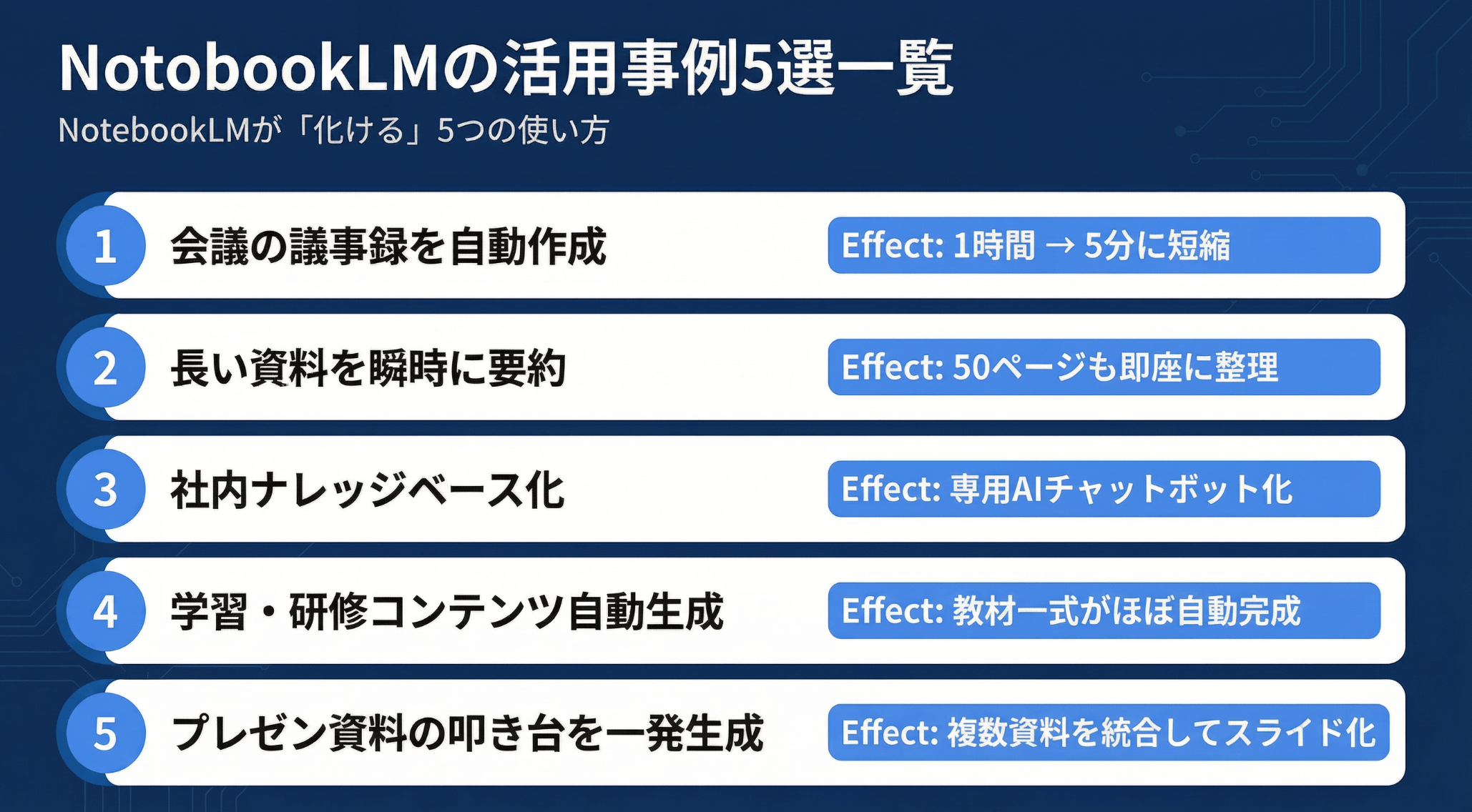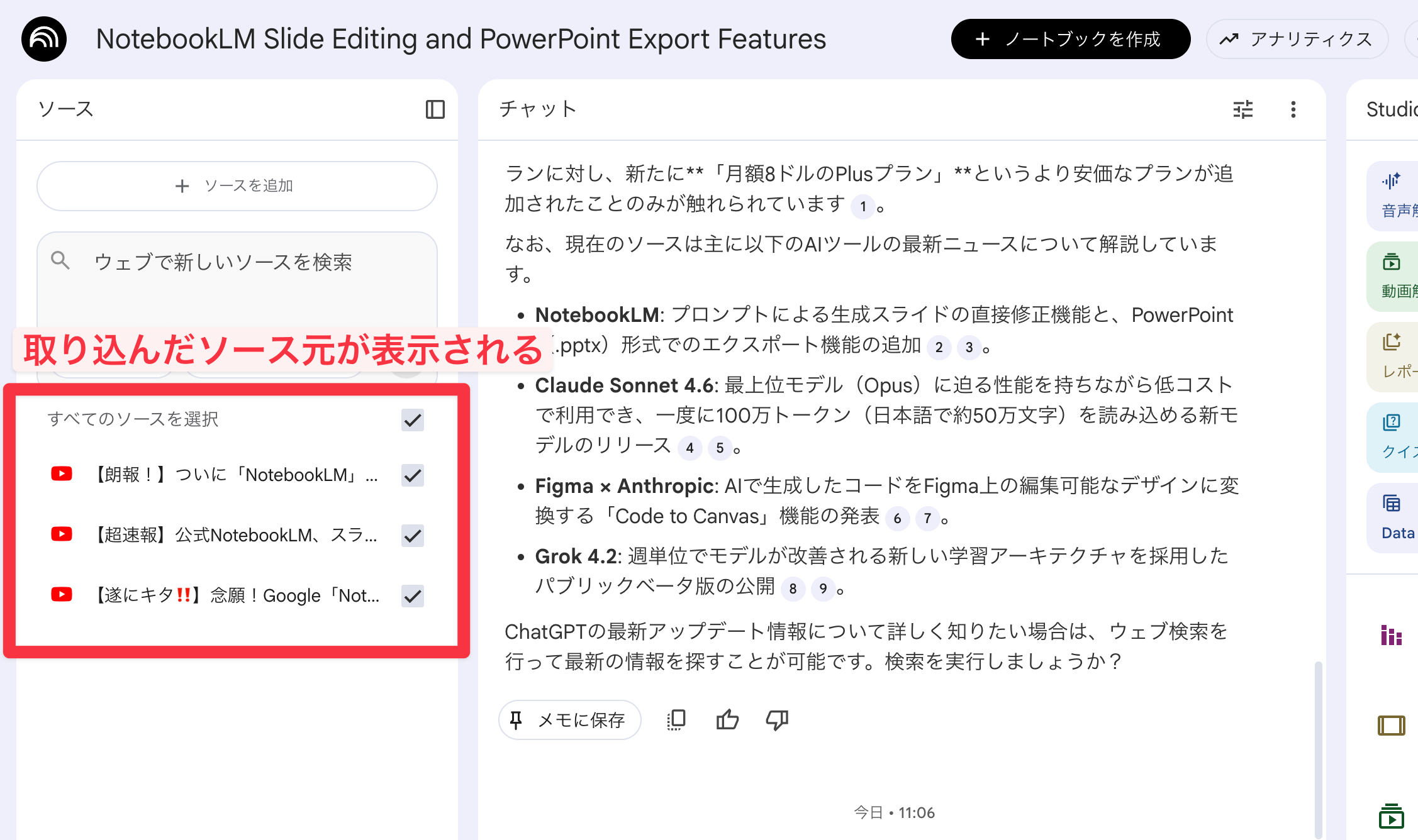 特にビジネスシーンでは、社内の会議資料や研修資料をPowerPoint形式で共有するケースがほとんどです。今回のアップデートで、NotebookLMの実用性が大幅に向上しました。