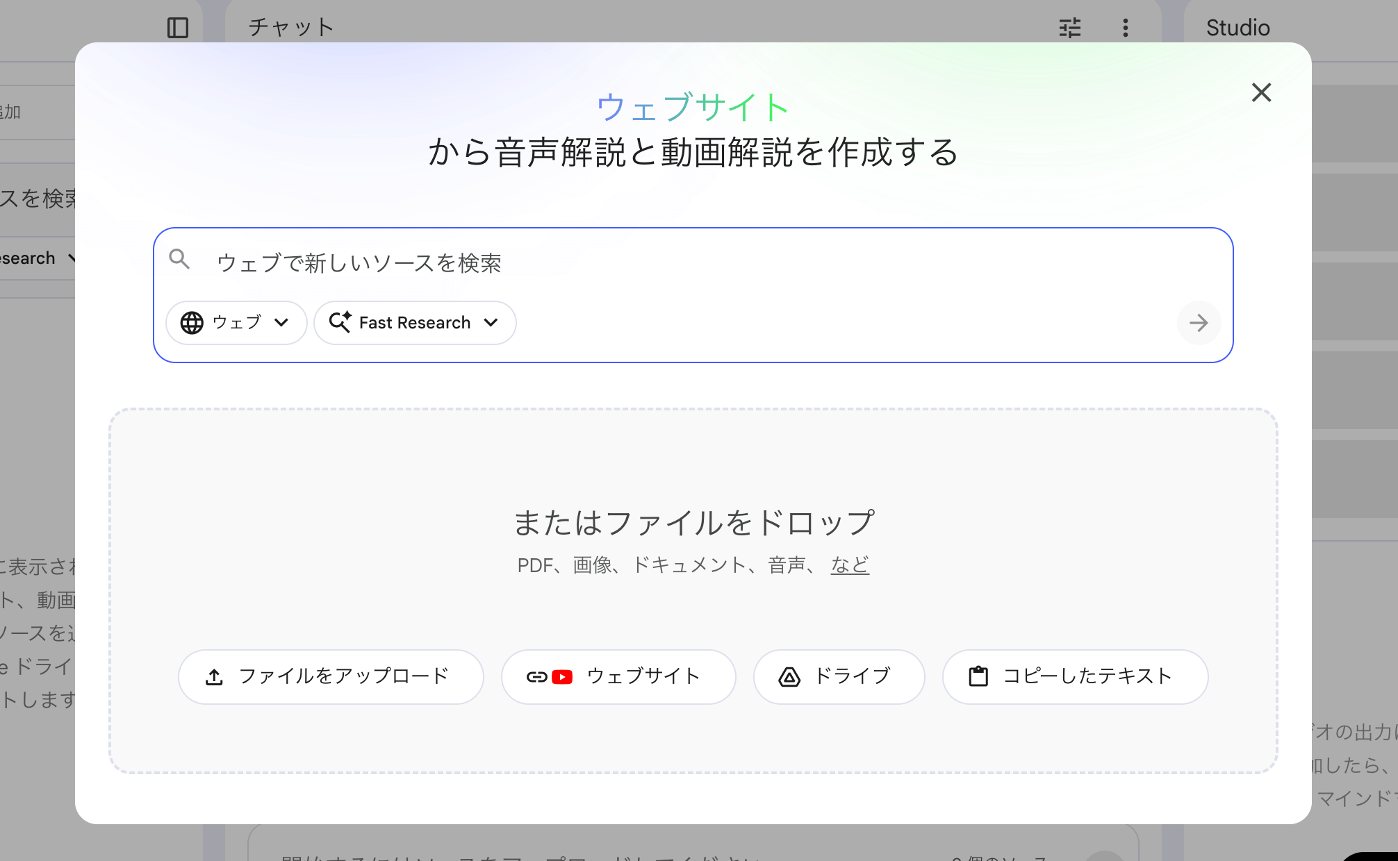 多彩な入力形式 PDF・URL・音声・動画・テキストなど幅広い形式に対応