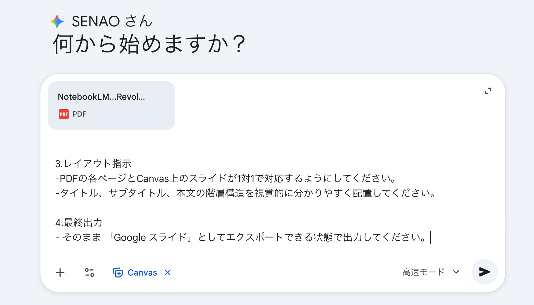 Geminiのキャンバス機能を使うことでPDFデータをGoogleスライドに変換できる機能を活用する方法がかなり便利なので、紹介しておきます。