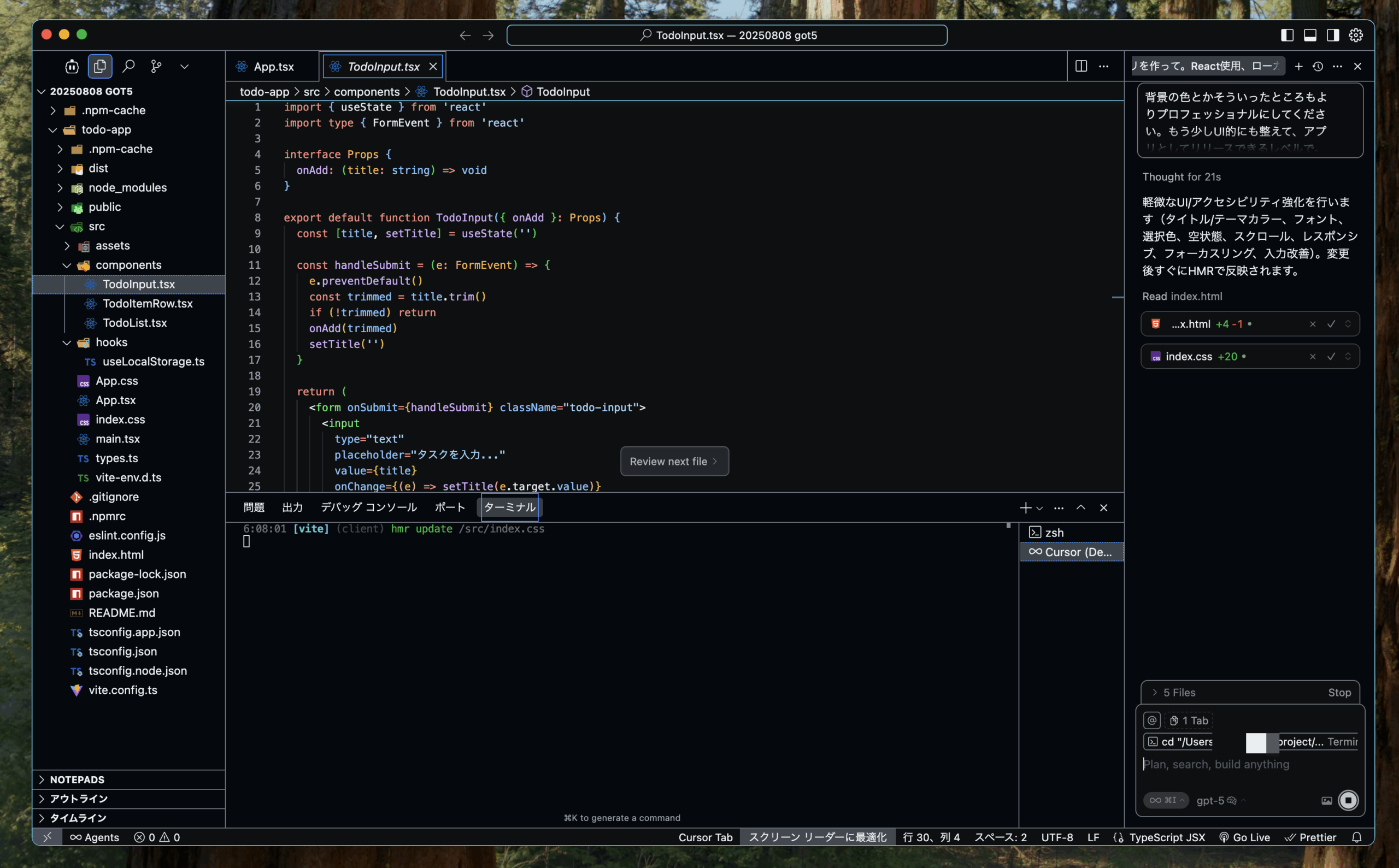 そのため今回はAI搭載のエディタ「Cursur」に移動してCursur内でGPT-5のモデルを動かし実行してみました。