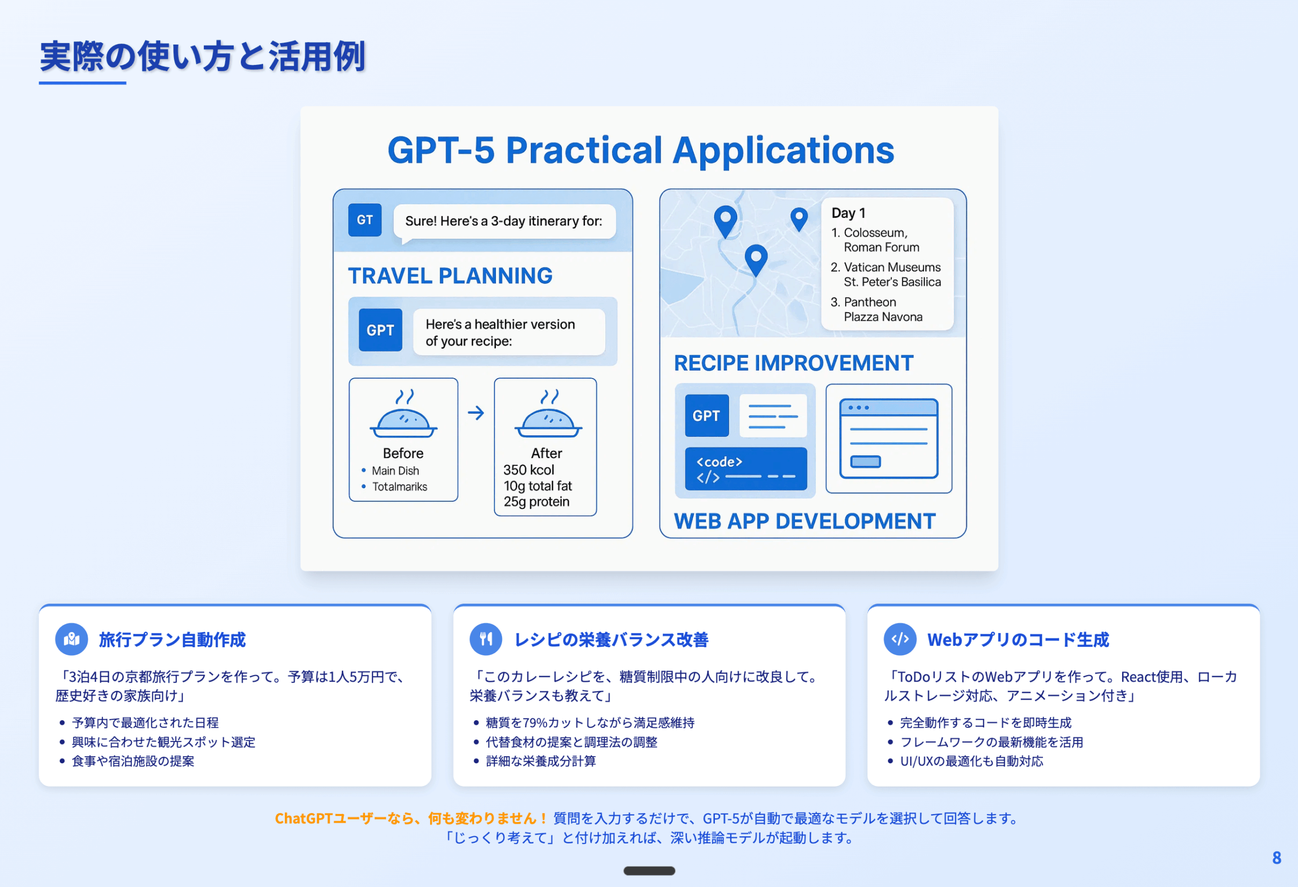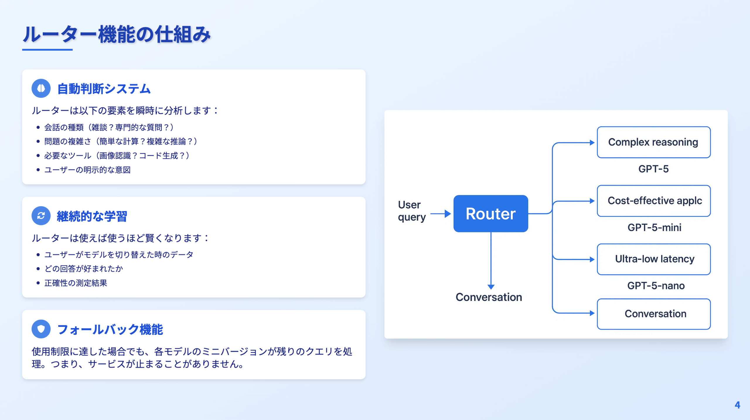 • GPT-5のルーター機能により最適なモデルを自動選択し処理効率が大幅向上