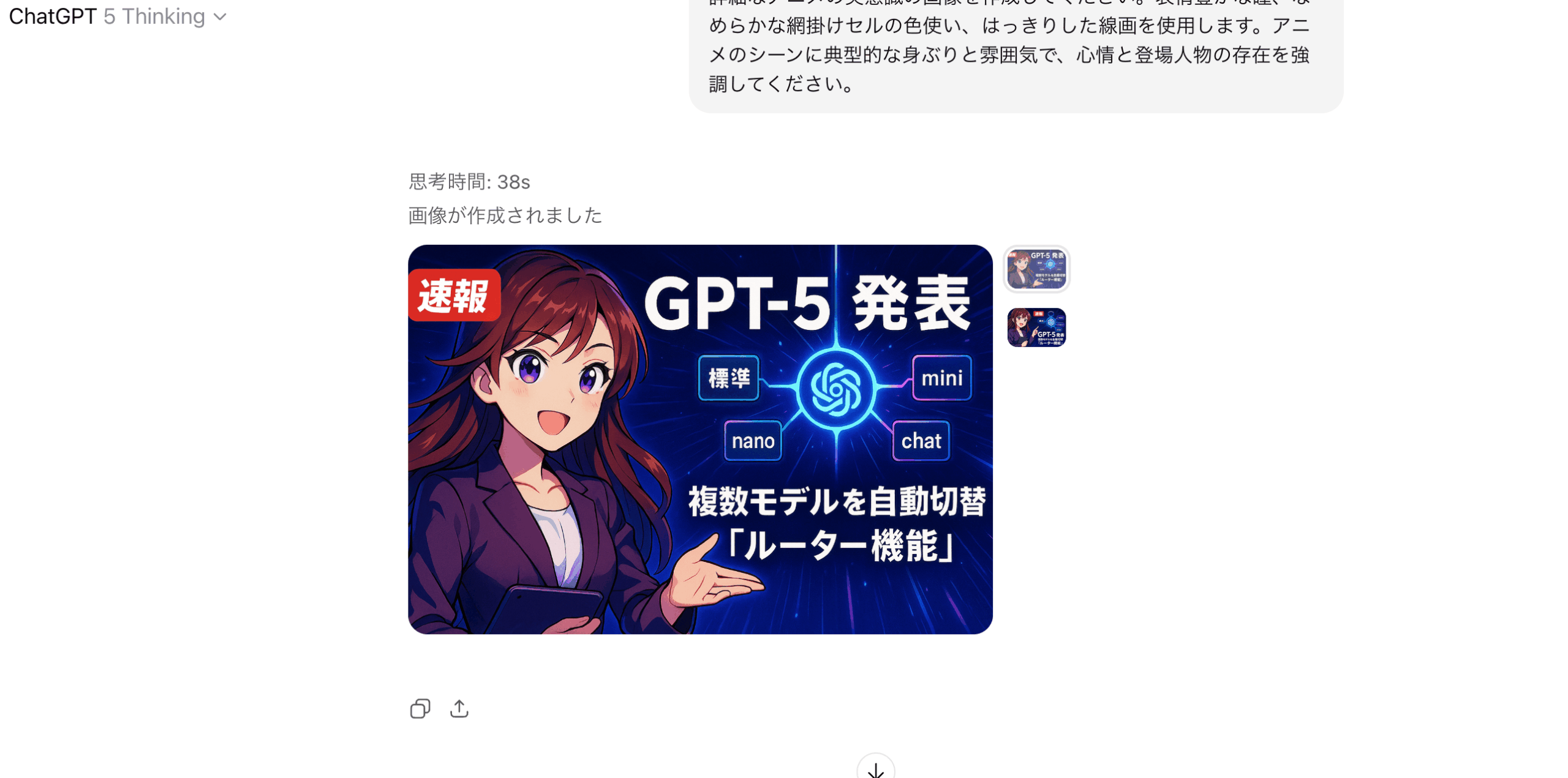今回のアップデートで個人的に一番驚いたのが画像生成の精度が格段に向上した点です。今回はYouTube動画のサムネイルを生成してもらいました。