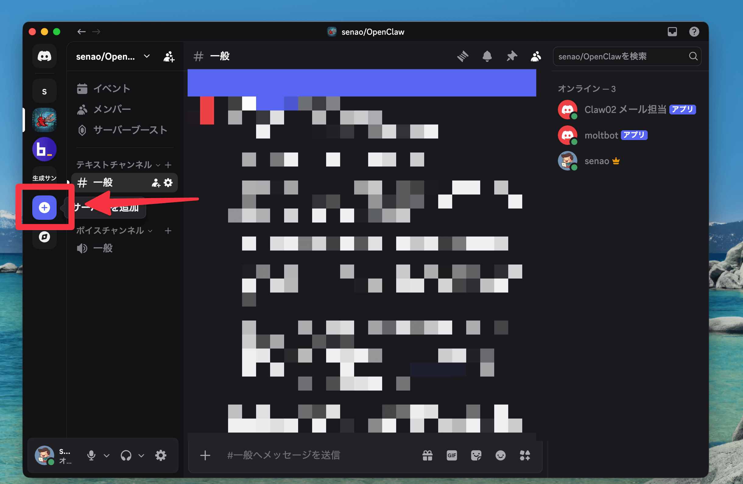 次に、OpenClawと通信するためのDiscordサーバーを作成します。