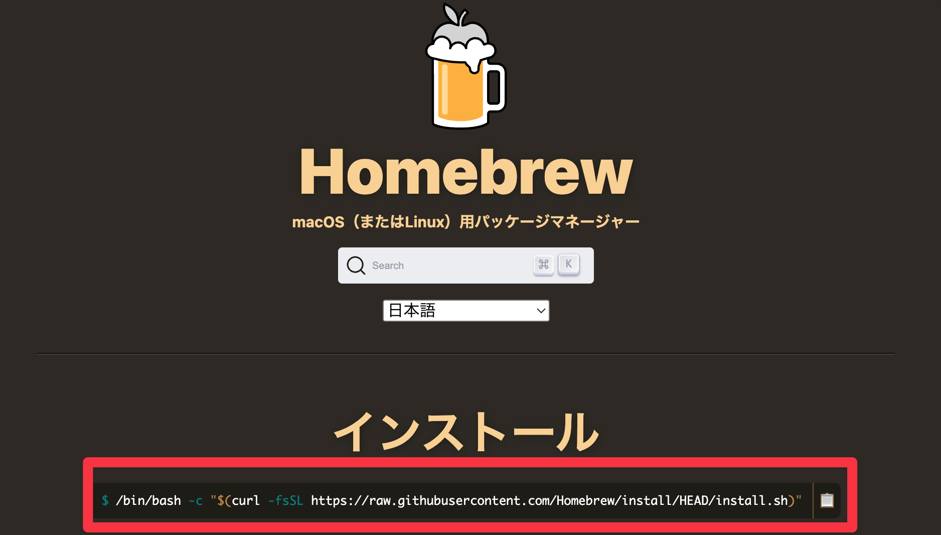 Homebrewは、Macにソフトウェアを簡単にインストールするためのパッケージマネージャーです。ターミナルを開き、以下のコマンドを実行してください。