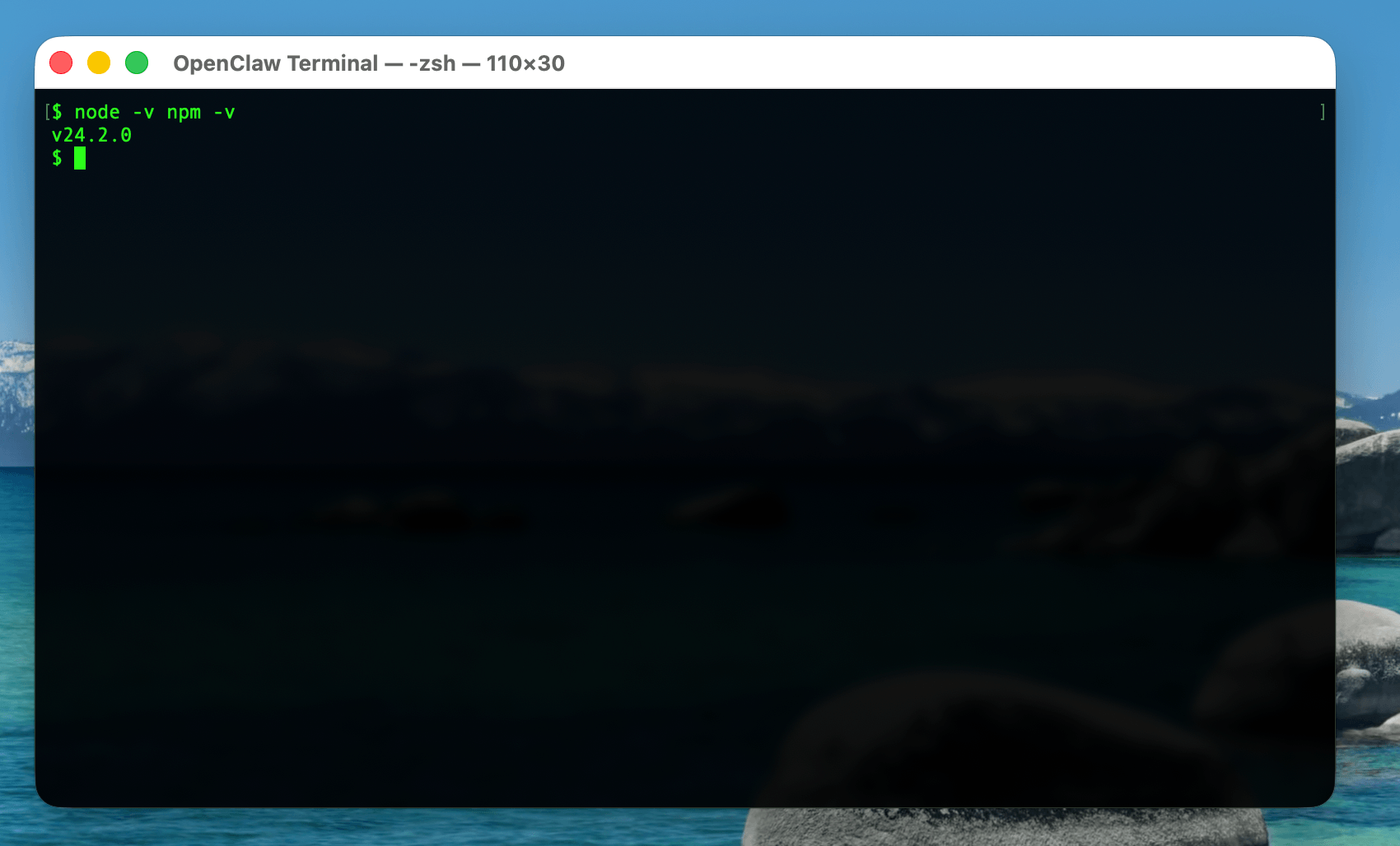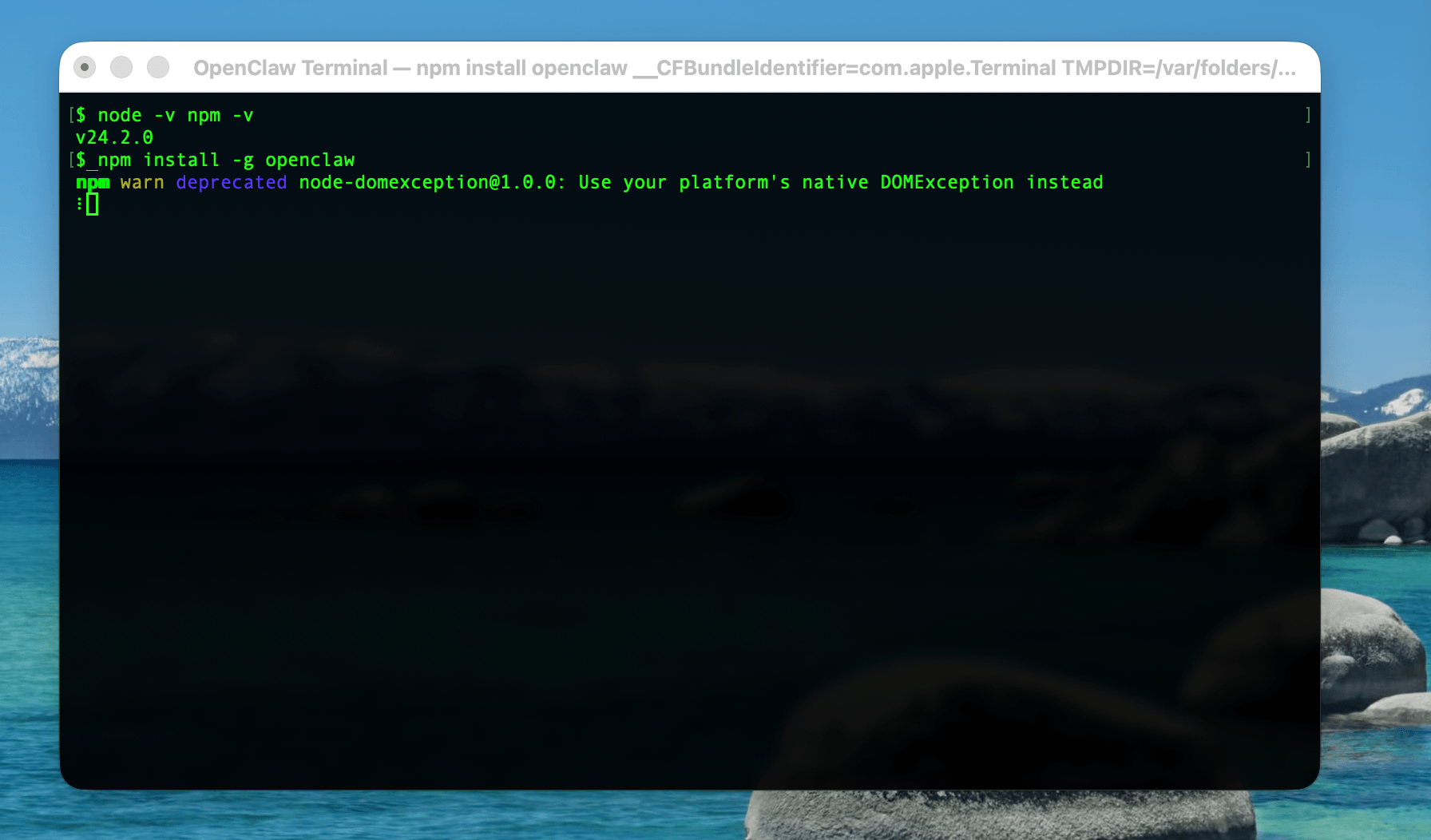 ターミナルで以下のコマンドを実行し、OpenClawをインストールします。