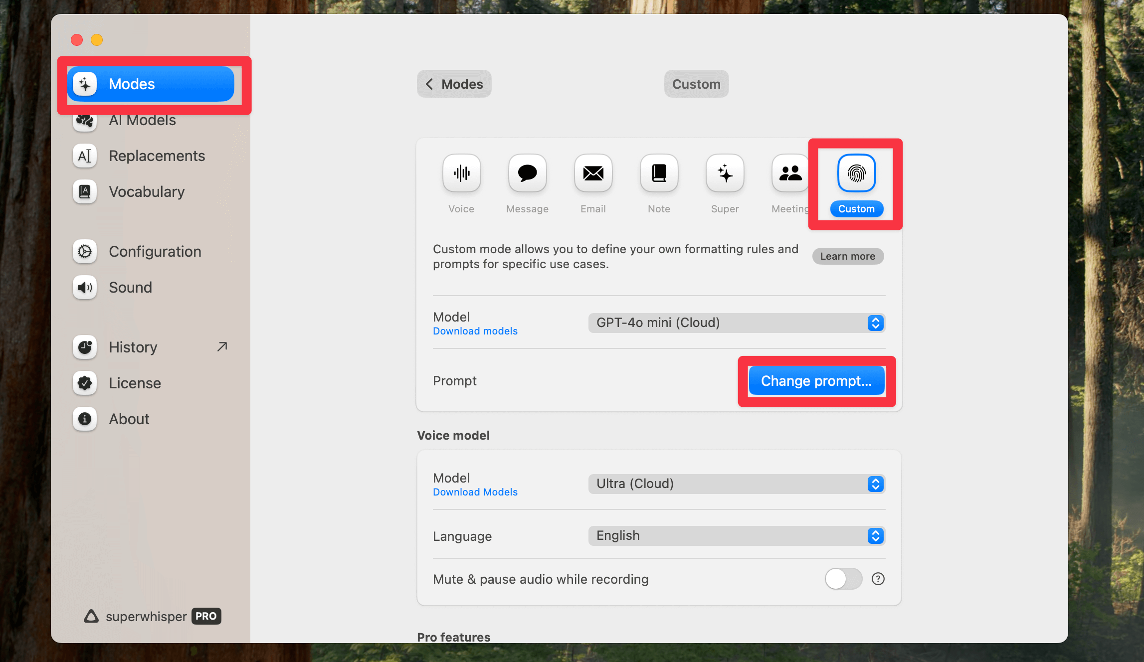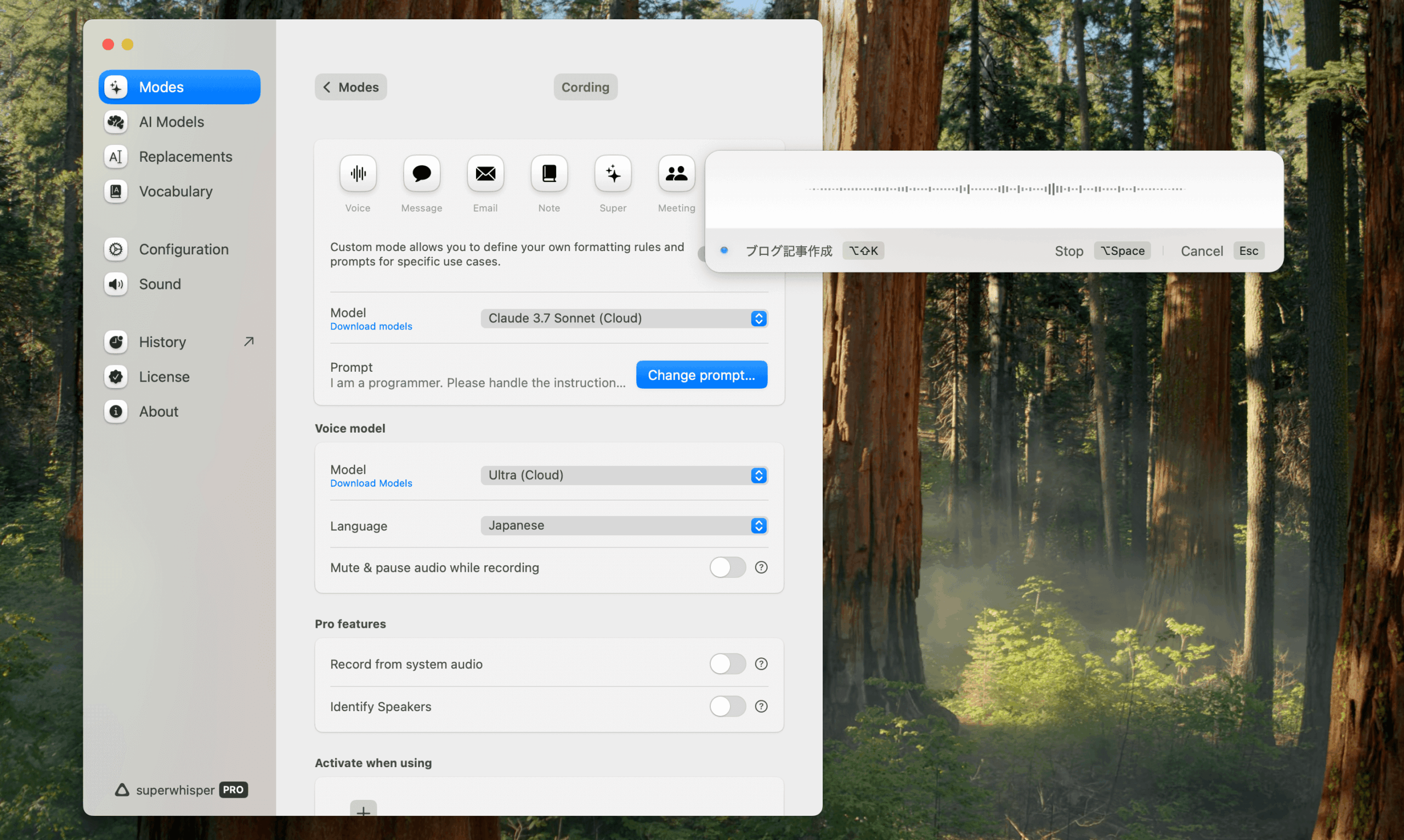 - SuperWhisperの「YouTube概要欄」モードを選択