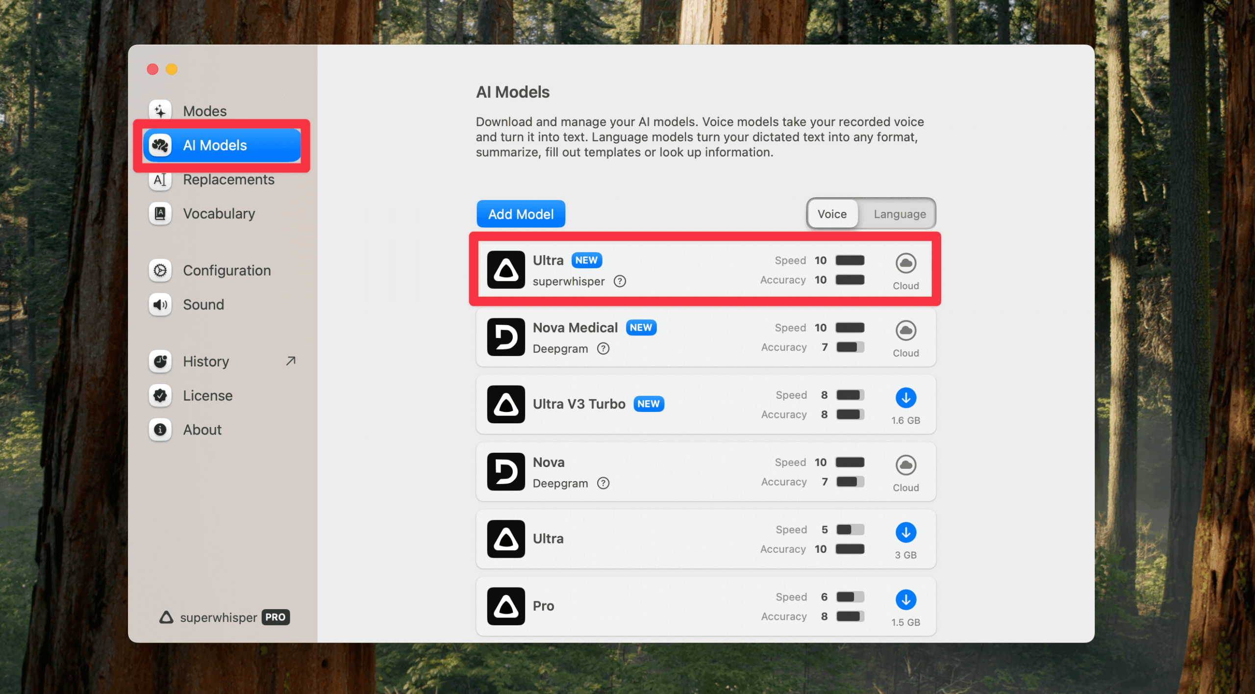 - AIモデルの選択(Ultra、Standard、Tinyから選択)