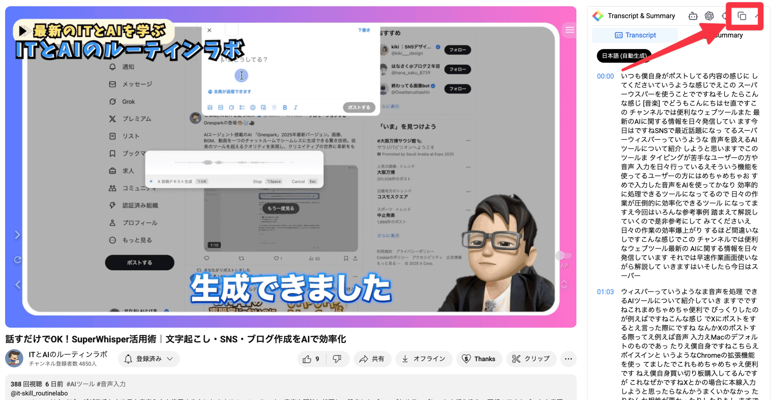 - YouTube Summaryで動画の文字起こしを取得