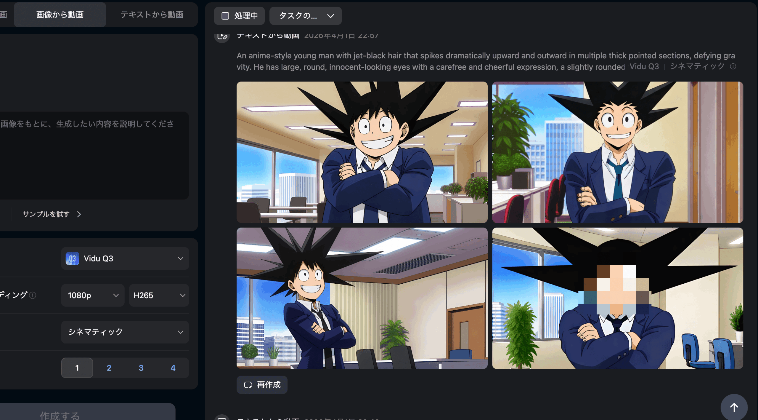 - 複数回生成してベストを選ぶ:4つ同時生成してクオリティの高いものを採用する