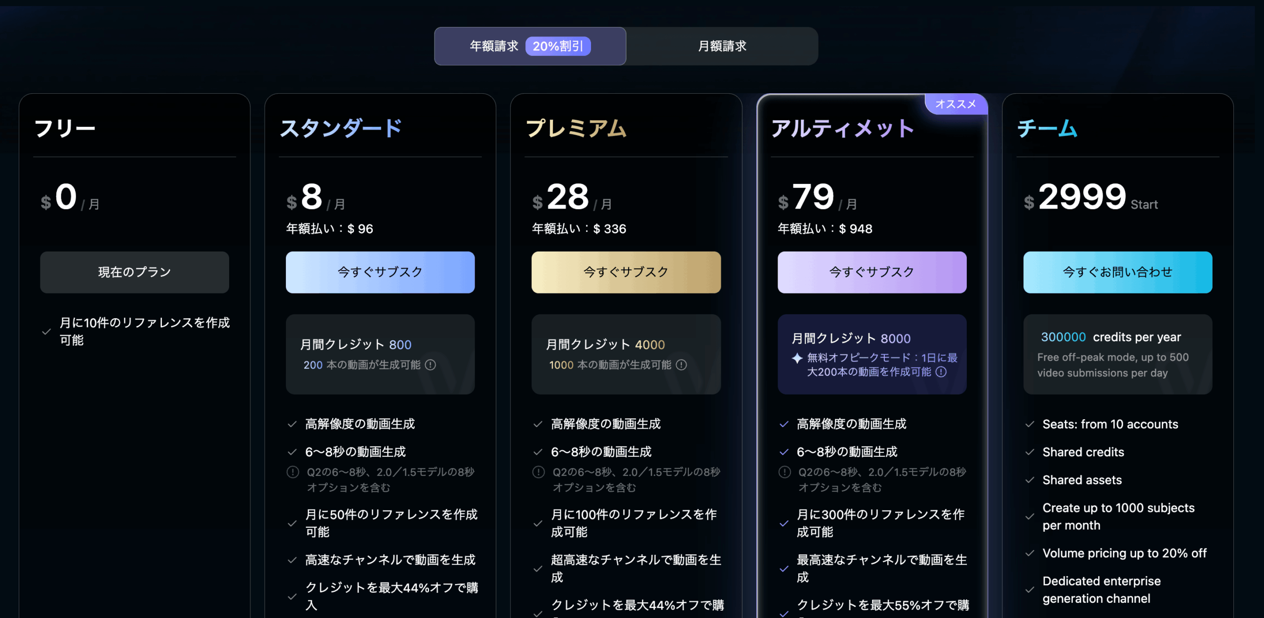 - アルティメット:大量のクレジットが必要なヘビーユーザー向け
