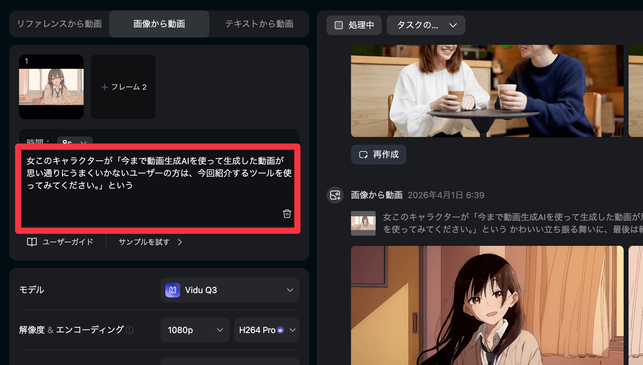 今回は動画生成AI「Vidu Q3」の使い方を紹介しました。